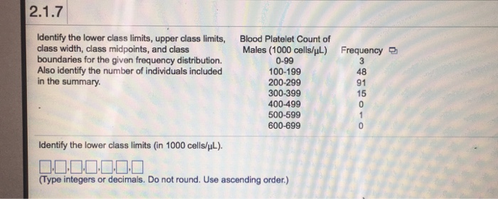 Solved: Identify The Lower Class Limits, Upper Class Limit ... from media.cheggcdn.com Similarly how do you find upper class boundaries. I want a free account. In statistics the class boundaries are numbers that separate classes without forming gaps. Corresponding to a class interval this may be defined as the total of the two class limits or class boundaries to be divided by 2. Find the class boundaries for each class. Find the upper and lower class boundaries of the frequency table. The lower class limit of a class is the smallest data value that can go into the class. The class width for a class in a frequency distribution is found by subtracting the lower or upper class limit of one class from the lower or upper class limit of the.